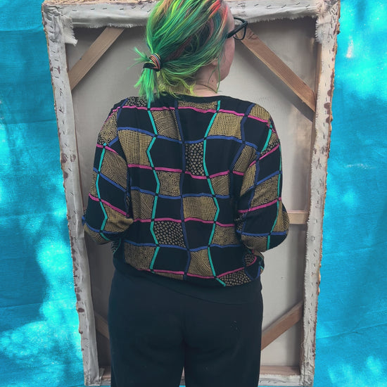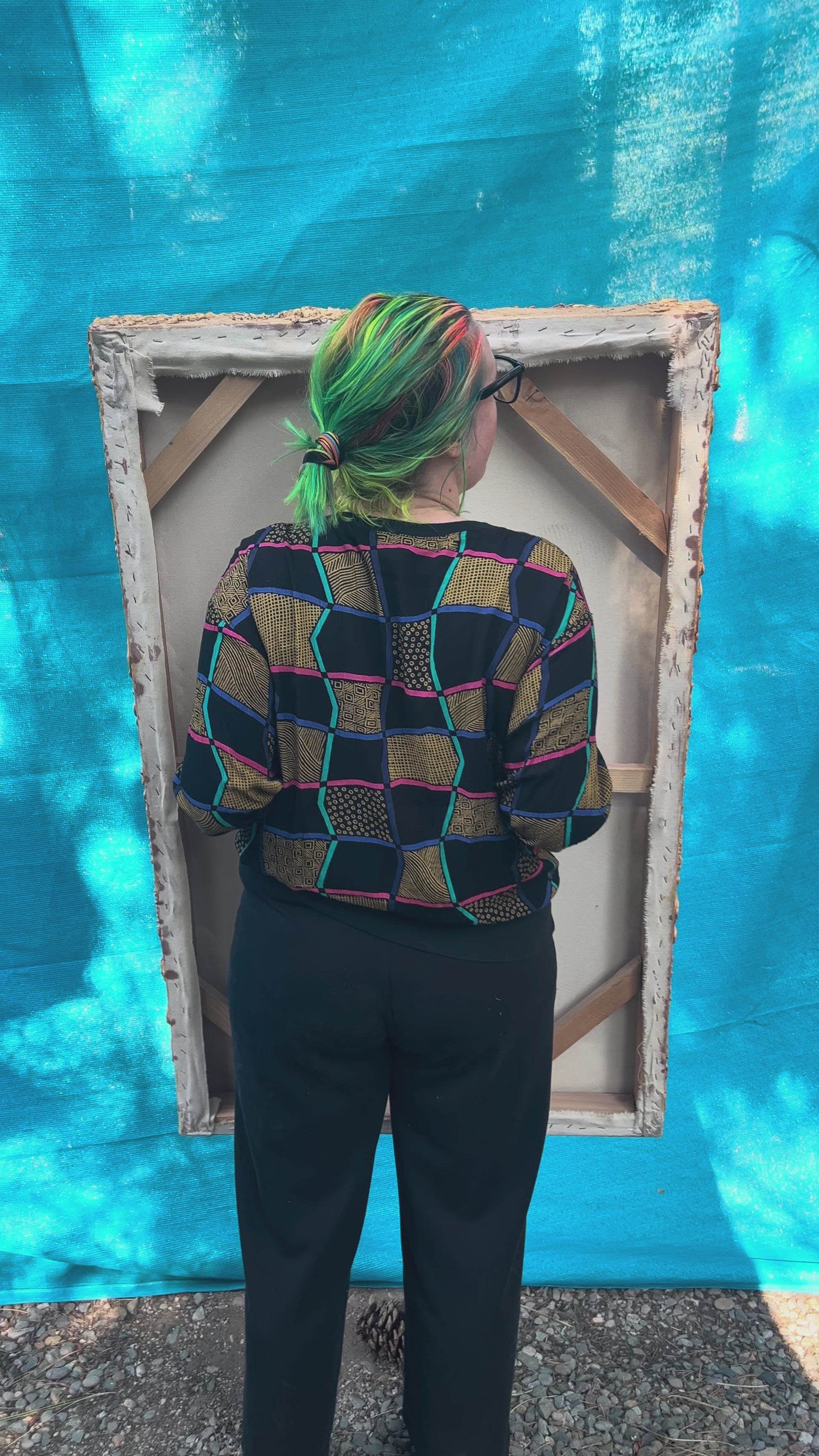 Heavy body acrylic, oil, modeling paste, gold leaf on museum 3x3" wrap canvas. 49x30"