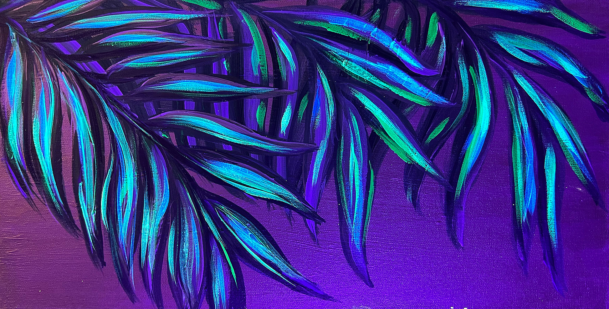 Original, one of a kind painting of tropical plants on a gold back ground. Uv reactive
