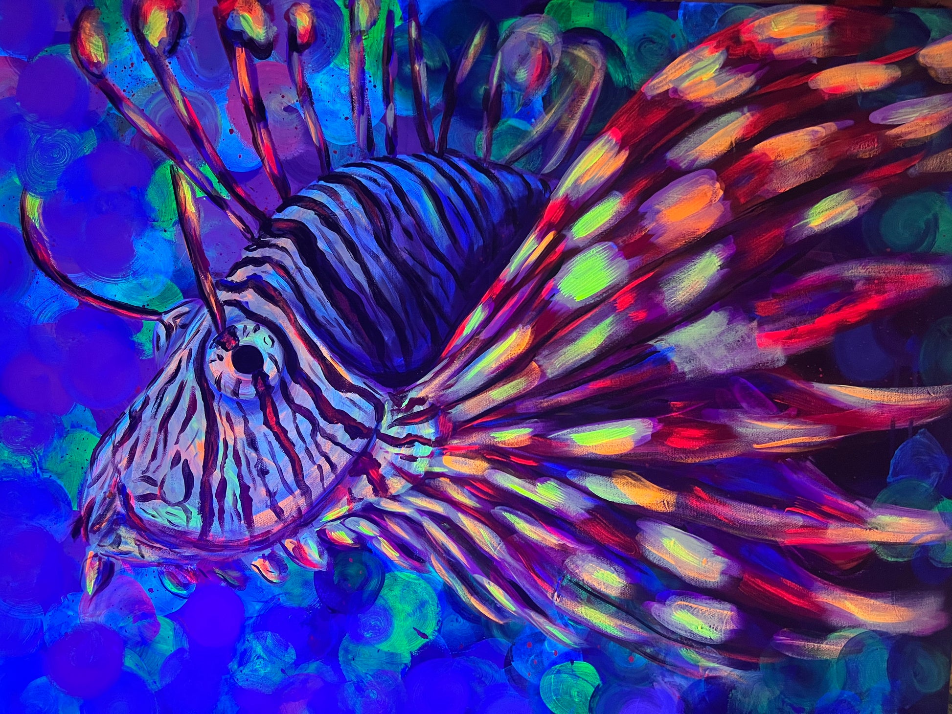 Uv reactive Lionfish, 30x40", Acrylic on gallery wrap canvas