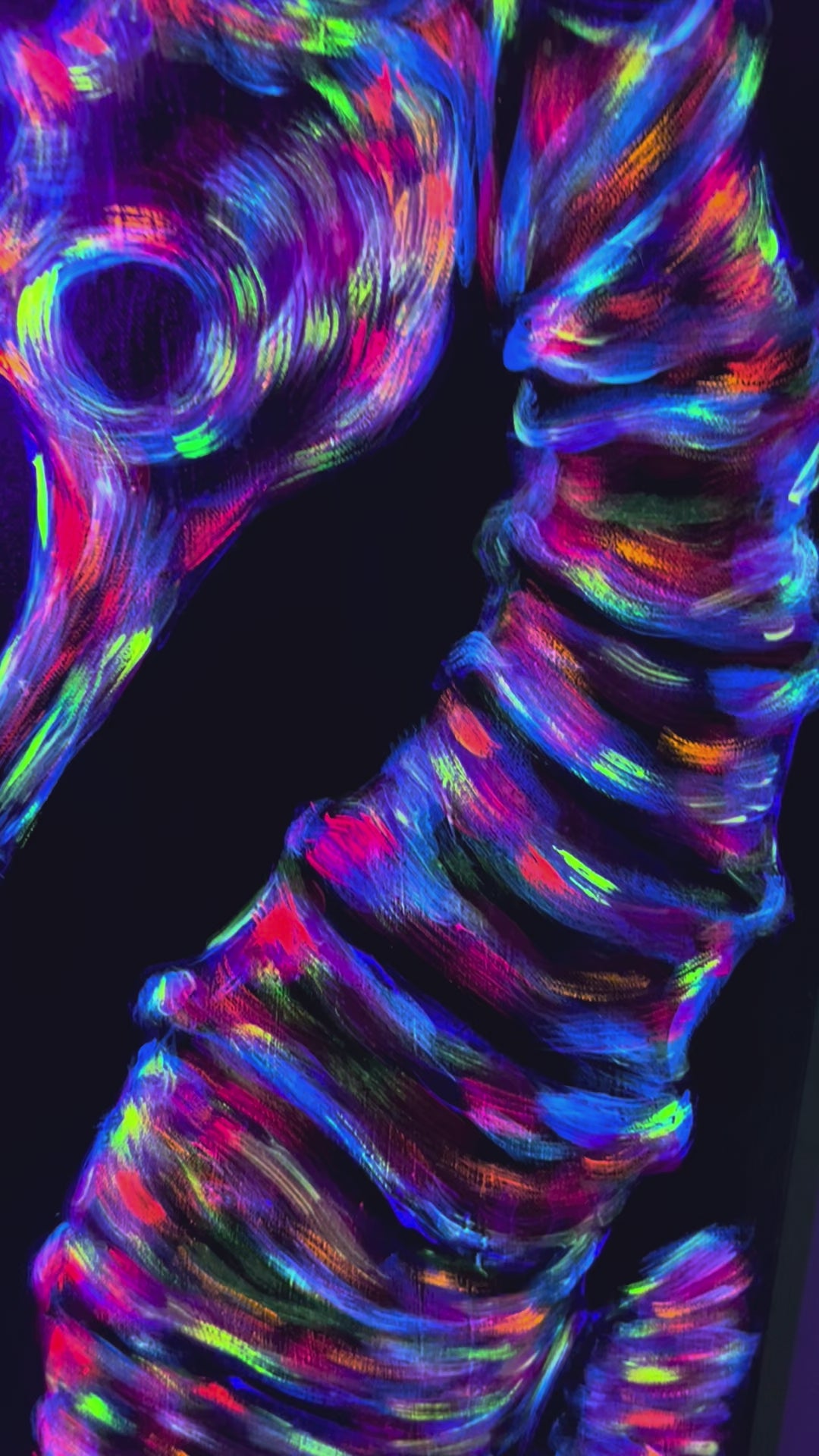 Original, one of a kind painting of a fluorescent sea horse, 36x12", Acrylic on gallery wrap canvas.
