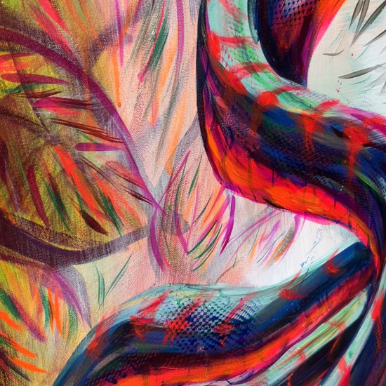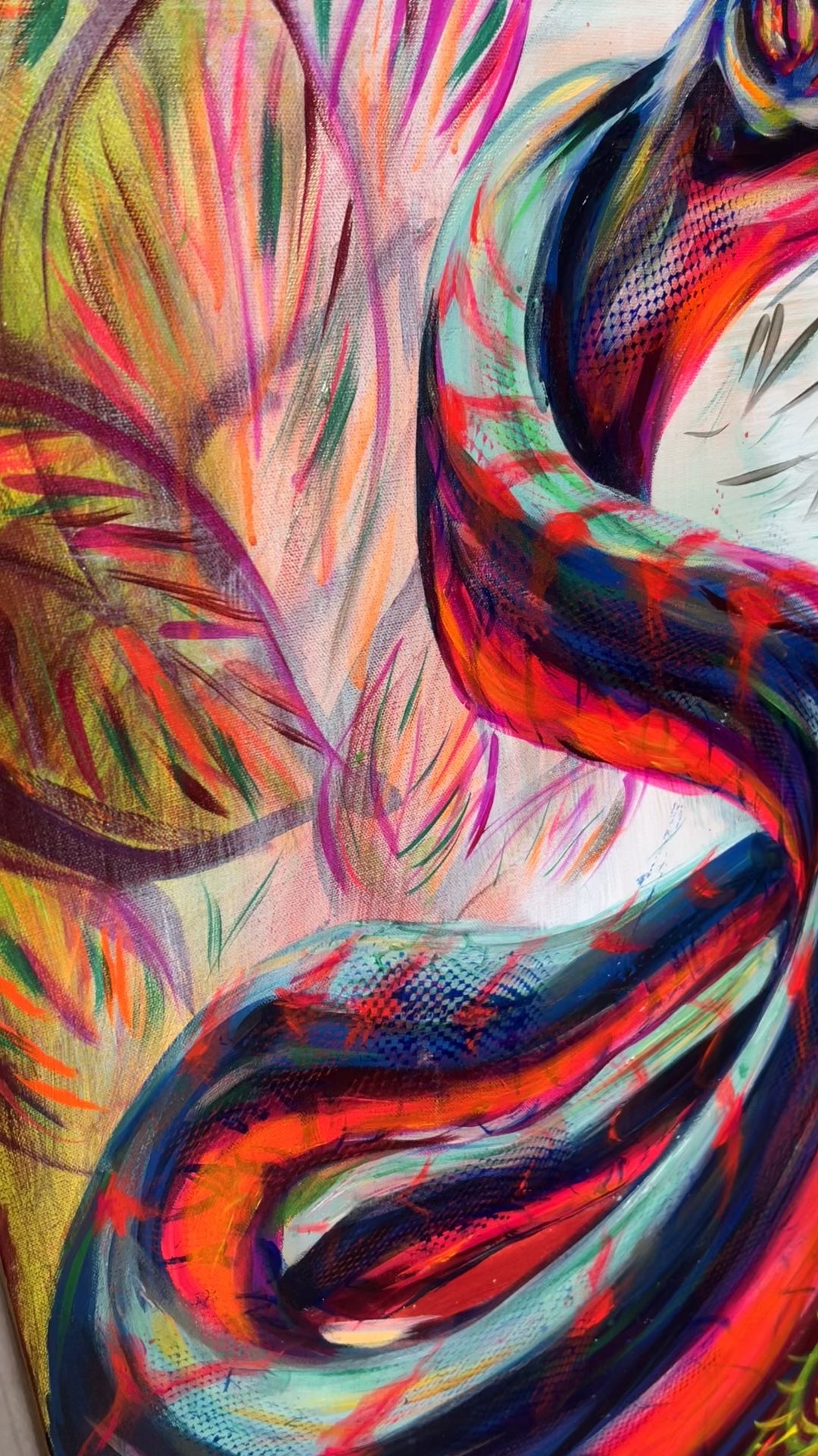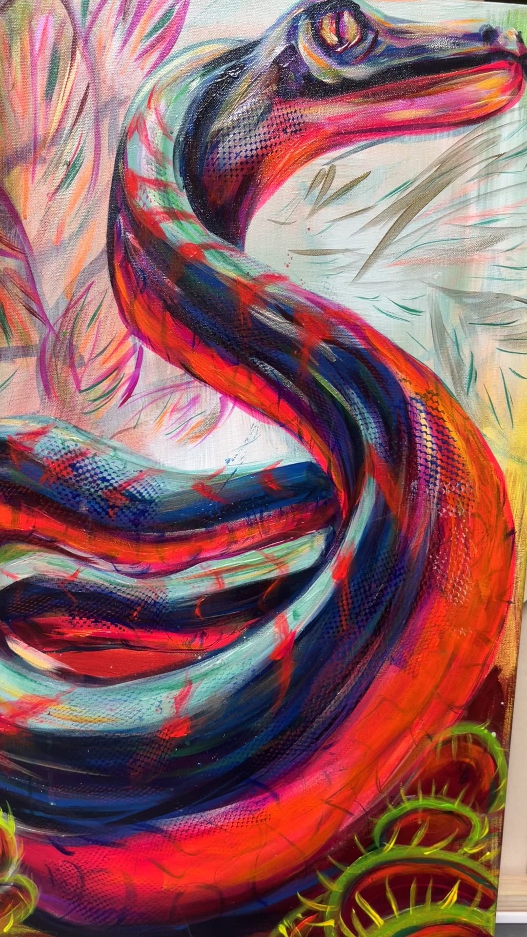 Original, one of a kind painting of a snake and venus fly traps. Uv reactive